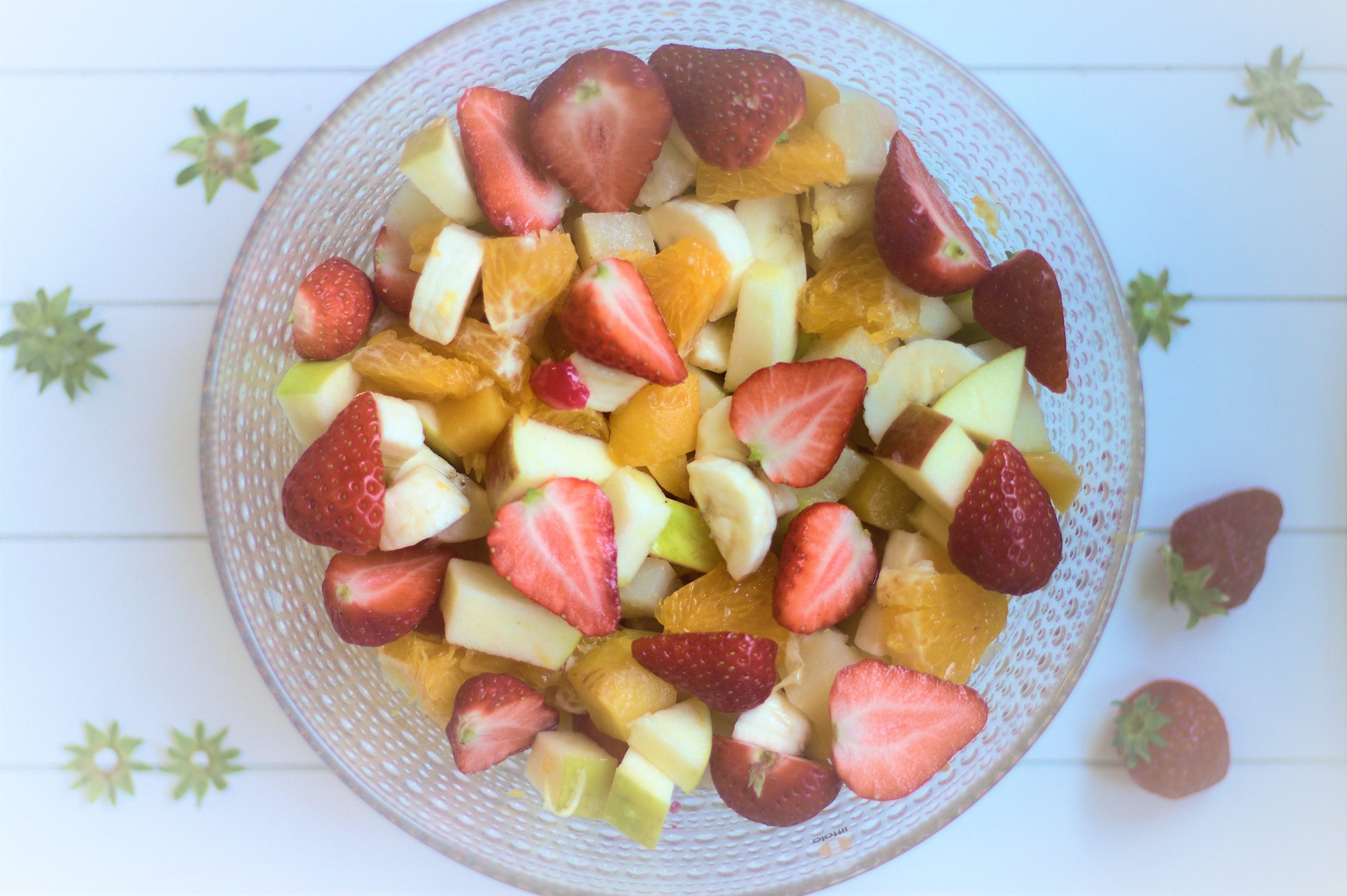 Vinkki: Voit käyttää hedelmäsalaatissa myös esim. kiiviä, viinirypäleitä tai tuoretta ananasta.