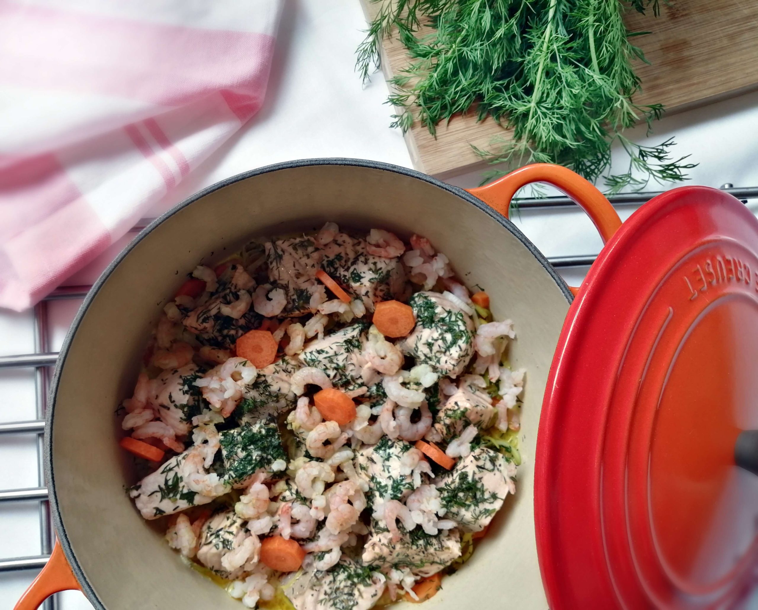 Äitini tarjosi usein kala-äyriäispataa meillä kotona, kun olin teini-ikäinen. Nykyisin se on minun ja mieheni yksi suosikkitavoista valmistaa kalaa. Siinä yhdistyvät ihanasti makea porkkana sekä lämmin curry, jotka pyöristyvät yhdeksi ihanaksi kokonaisuudeksi lorauksella kermaa. Lopputulos on niin herkullinen, että mahdollisesti yli jäänet kauhalliset saattavat hävitä suoraan jääkaapista parempiin suihin.